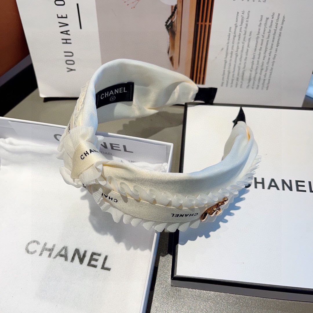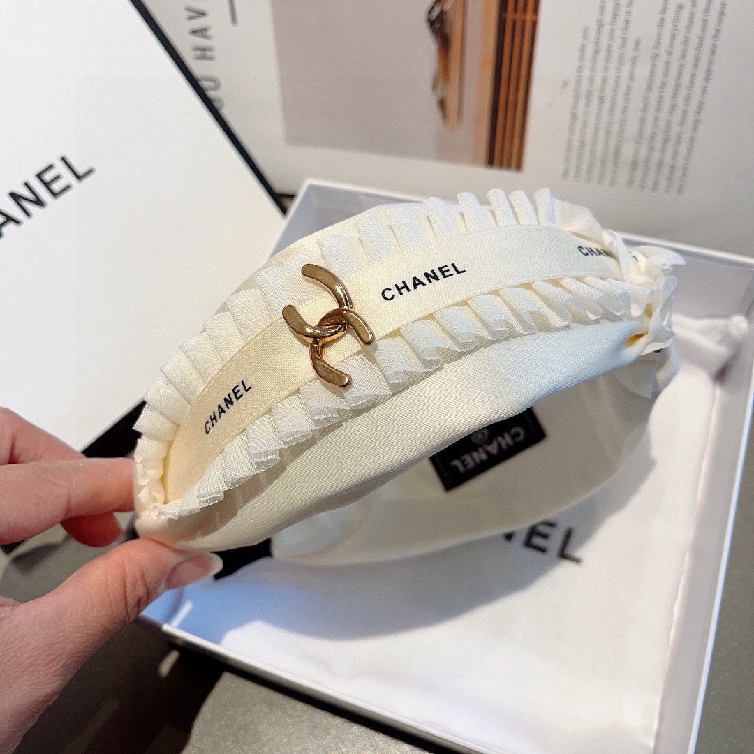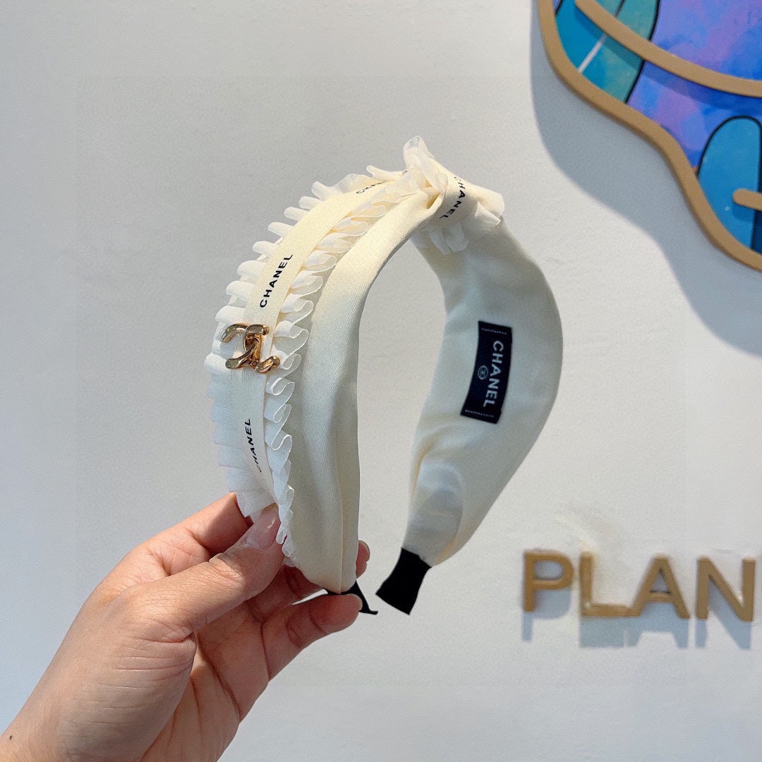 WHITE FABRIC WITH GOLD LOGO HAIRBAND 410841