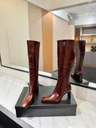 YSL 25 Zipper Sleeve Boot Burgundy Cowhide 520790